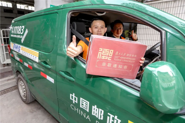今天(7月15日)上午8点,整个杨浦区五角场揽投部内都充满着一股喜悦与期待交织的气息。邮政投递员李如意神色匆匆却又难掩兴奋,他驾驶着邮车,如同一辆承载着希望与梦想的特快专列,带着一份沉甸甸的邮件,向着国权东路疾驰而去。这封来自复旦大学的录取通知书,宛如一把神奇的钥匙,即将为一位学子的多年努力画上圆满的句号,开启他人生崭新的精彩篇章。
