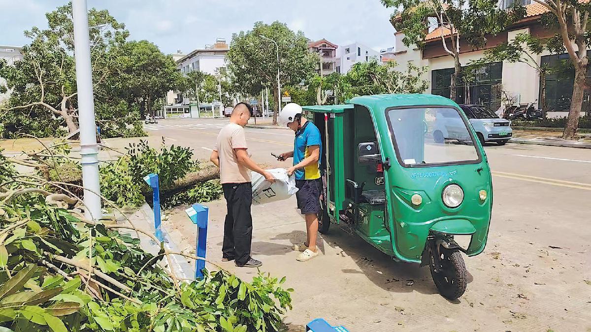 台风过后,三亚邮政投递员第一时间投送邮件。
