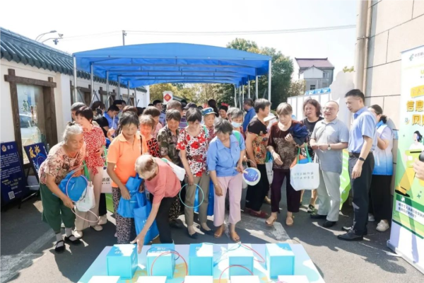 “非法集资 钓鱼链接 高收益理财”、“吾要抓牢伊!”、“风险套圈圈”区域排起长龙,站在队首的村民王伯伯正站在三米外卖力地套起了圈圈,地贴上散布着各种金融陷阱标签,套中即可赢取印有反诈口号的实用礼品。“金融完全千万条,防范诈骗第一条!”、“乡音大转盘”区域也是人气爆棚,转到“上海闲话”就要用沪语朗读反诈口诀,转到“幸运答题”则要现场拆穿一则诈骗套路。参与活动的李阿姨笑得合不拢嘴:“既好玩还长知识,回家还要教老头子!”,反诈知识“口口相传”覆盖全场。